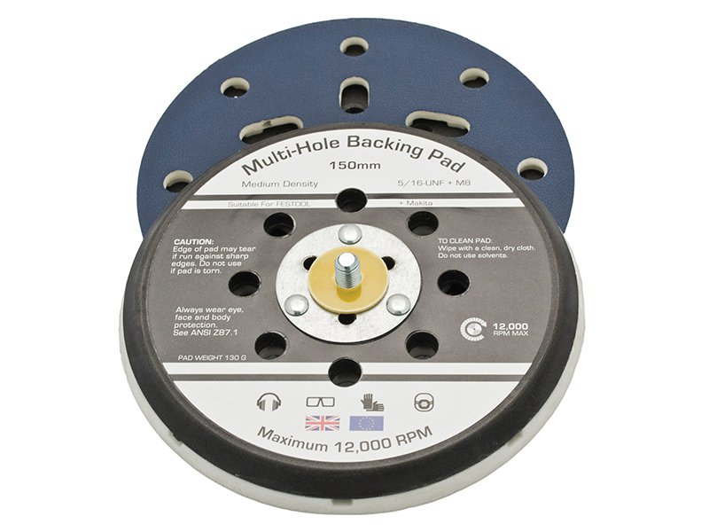 150mm with 8 holes to suit Festool and Makita dust extraction dual action machines.