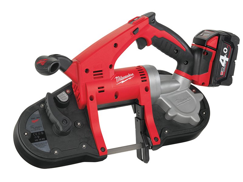 The Milwaukee HD18 BS-402 Cordless Bandsaw has a compact and lightweight design, making it ideal for cutting overhead and in tight spaces. It cuts most common materials for electricical, plumbing and mechanical cutting applications.