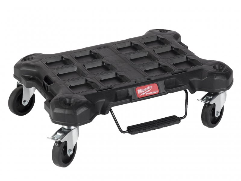 The Milwaukee Hand Tools PACKOUT™ Flat Trolley transports multiple PACKOUT™ boxes and bags. Durable castors enable easy rolling, even with a heavy load on the jobsite. Fitted with a locking brake and 2 side locks to stop the trolley and easily connect the PACKOUT™ boxes and bags.
