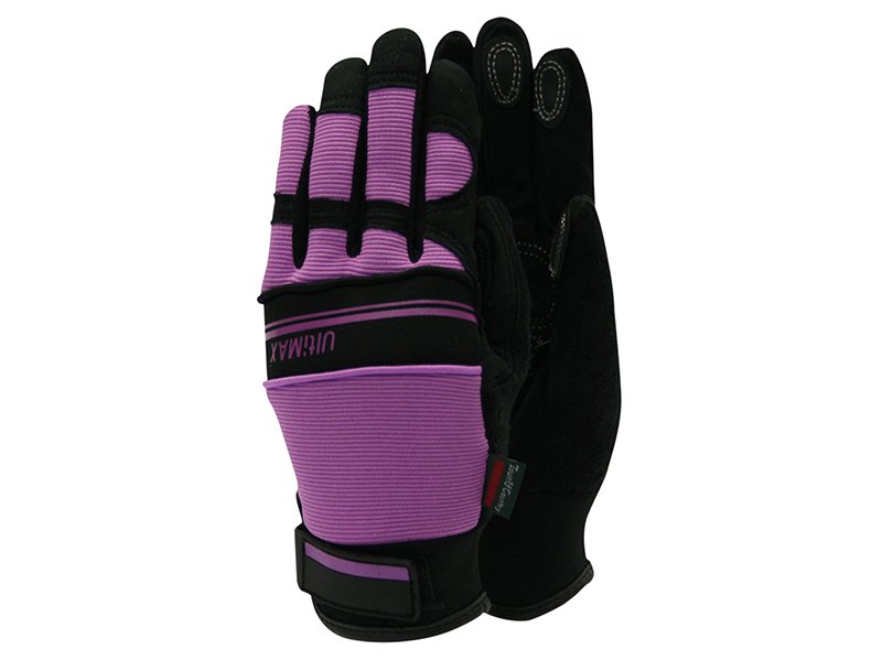 Town & Country TGL223M Ultimax Ladies Gloves have been designed for carrying out heavy-duty tasks in maximum comfort. The palm of this glove is made from strong but supple synthetic leather and features textured palm pads for improved grip. With a neoprene knuckle 'shock absorber' and reinforced fingertips. The elastane back provides an extremely close fit.