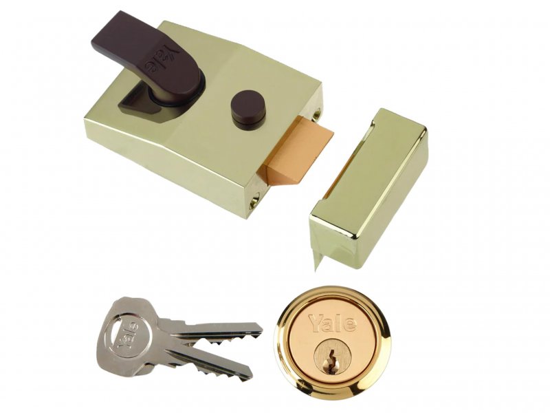 The Yale 89 series deadlocking standard nightlatch security locks are some of the most widely-used front door latches. They are key operated from the outside and lever handle operated from the inside. The latch automatically deadlocks on closing the door and the snib function (bolt hold back button) enables the latch to be held back.