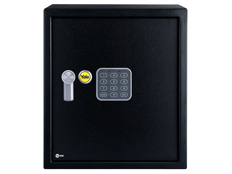 The Yale value safe range uses digital keypad code entry with key back-up. These safes offer 10,000 possible combinations using a 3-8 digit programmable code, plus a time lock feature which operates after 3 incorrect entries (20 secs) and 6 incorrect entries (6 minutes).